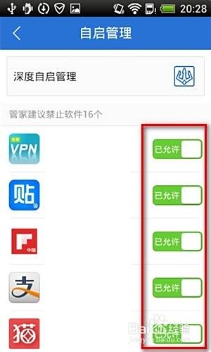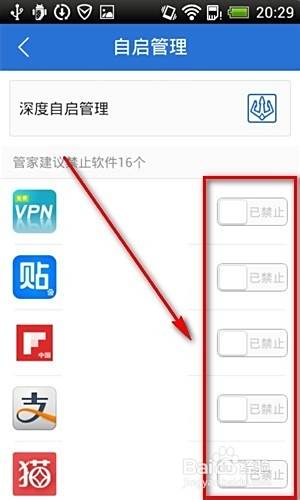 由于安卓系统本身的问题,一款软件在安装后会在很多进程中都设置自己的启动项,使用上述的禁止方法并不能完全的禁止对应软件的自启动。可以选择【深度自启管理】来进一步进行处理。