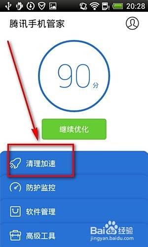 进入管家界面,界面上方可以看到当前的系统资源占用情况,我们点击【清理加速】。