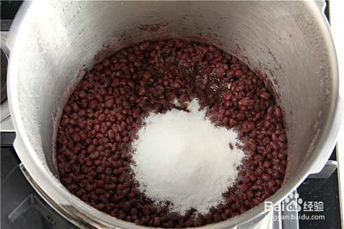 将红豆放入锅中加入白糖,炒软后晾凉。