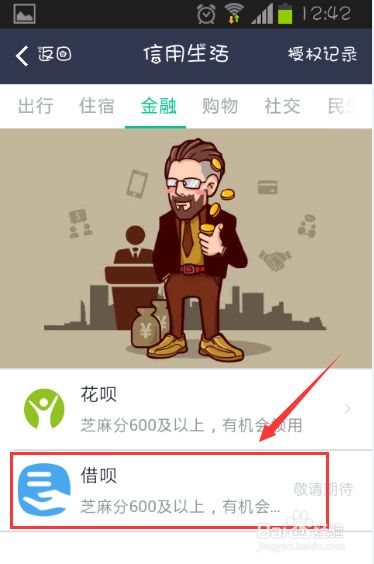 然后就可以看到【借呗】,要求信用分在600分以上才能使用,现在还处于内测,所以不是所有人都可以使用