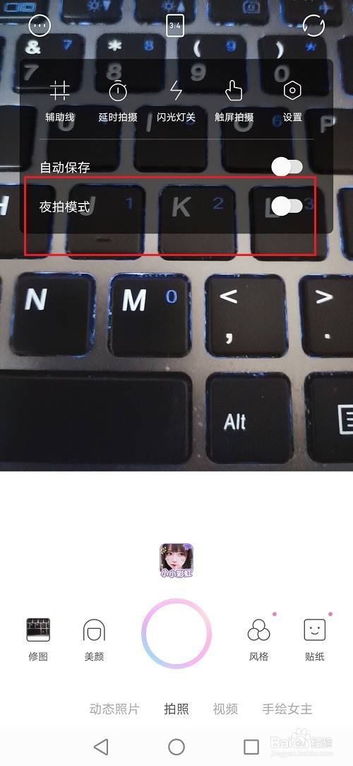第四步点击之后,就开启一甜相机夜拍模式了,根据需要设置