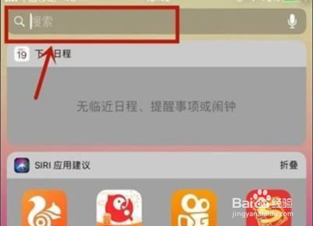 第一步,系统更新到ios15之后,负一屏将不会显示闹钟日程,用户可在搜索栏点击搜索时钟,