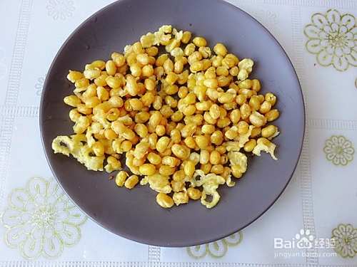 热锅热油,油五分热的时候放入黄豆炸,看到有粘连的用筷子分开,蛋黄和玉米淀粉的糊会有少量和黄豆分离,没关系,炸熟了一样吃