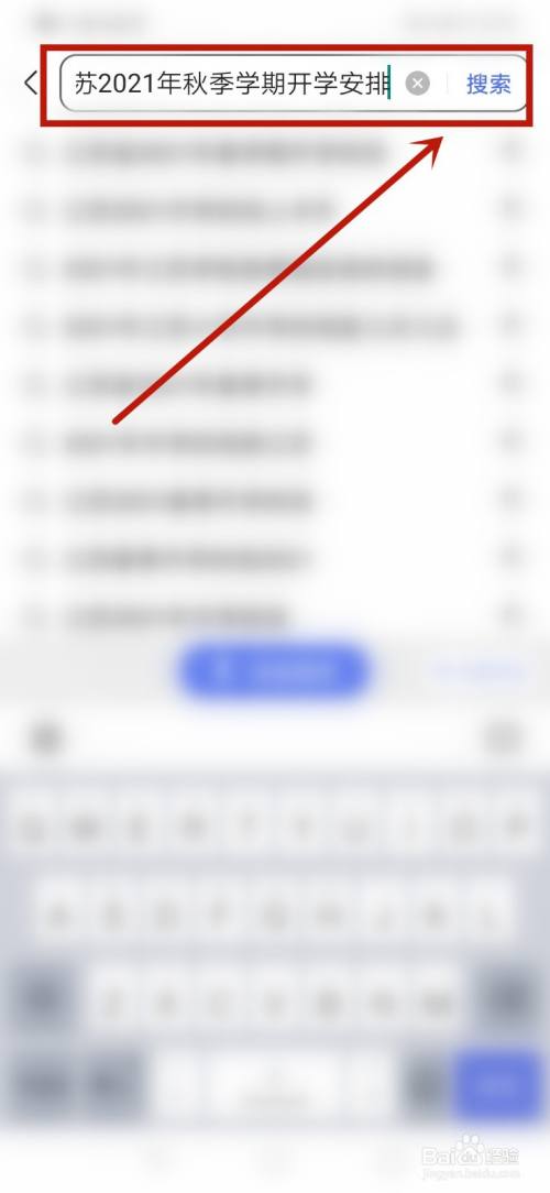 在搜索界面中,输入【江苏2021年秋季学期开学安排】,点击搜索。