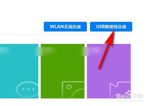 启动软件,点击USB数据线连接,连接手机和电脑。
