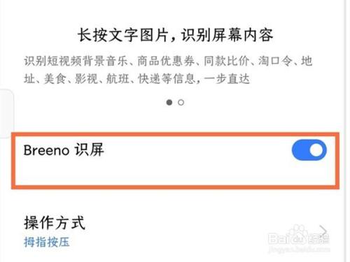 第3步,将【Breeno识屏】右侧的开关开启即可。