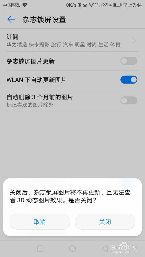 软件提示关闭后杂志锁屏图片将不在更新,点击“关闭”关闭杂志锁屏就可以了