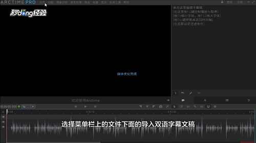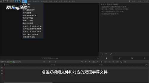 3选择菜单栏上的文件下面的导入双语字幕文稿。