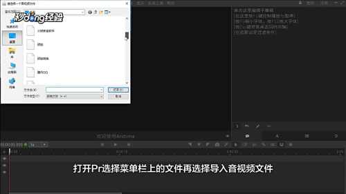 2打开pr选择菜单栏上的文件,在选择导入音视频文件。