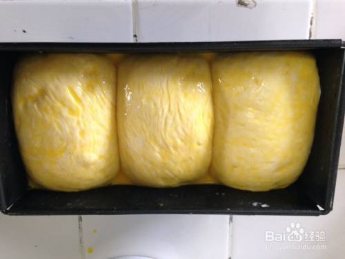 将卷好的面卷排放到吐司盒里