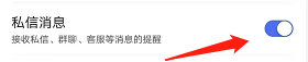 进入消息设置页面,找到私信消息选项,滑动按钮为选定状态。