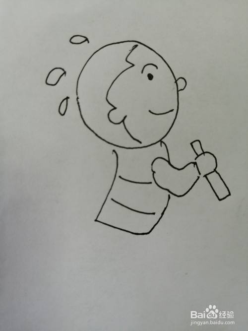 第五步,接着在小男孩的手臂上面画出一根木棍,画法比较简单。