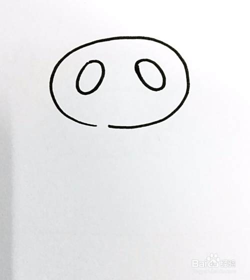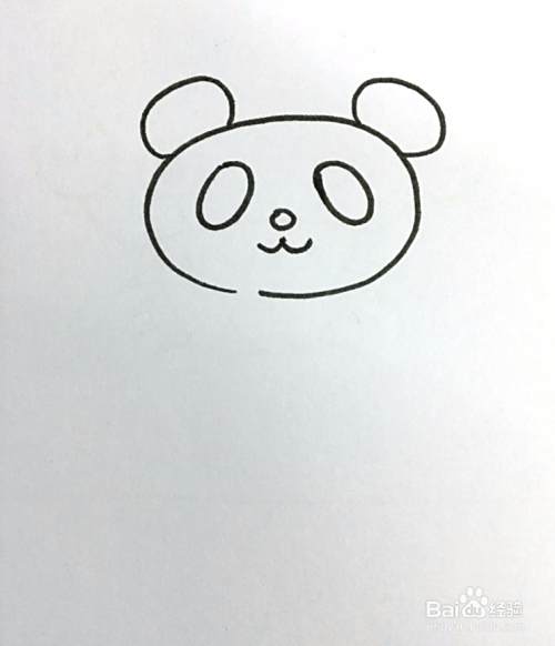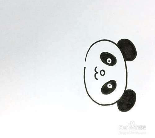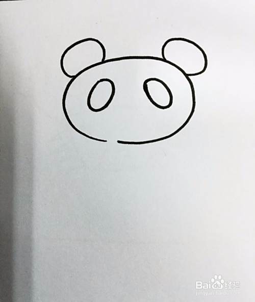 首先,画一个大的椭圆和两个小椭圆,这就是熊猫的头和眼睛了。