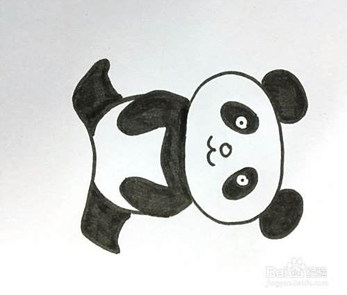 最后,把四肢都涂上黑色,那么,一只可爱的小熊猫就画完了。