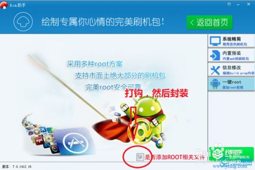 3.选择 一键root ,添加root相关文件打钩,开始封装