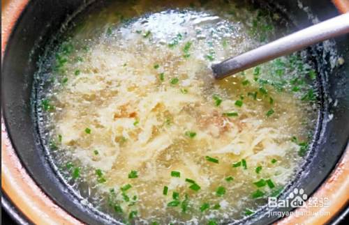 再加入适量的盐和葱花,调味后关火,起锅,好吃美味适合养生的香菇山药蛋花汤就做好了。