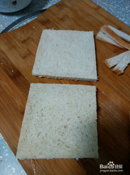 杂粮面包片,我买的是大片的,就是比普通面包片大一些,这样的话,将面包片四边切掉后,剩下的部分还比较大,杂粮的口感不如普通面包那么甜,正因为如此,才可以吃出麦子的香味。