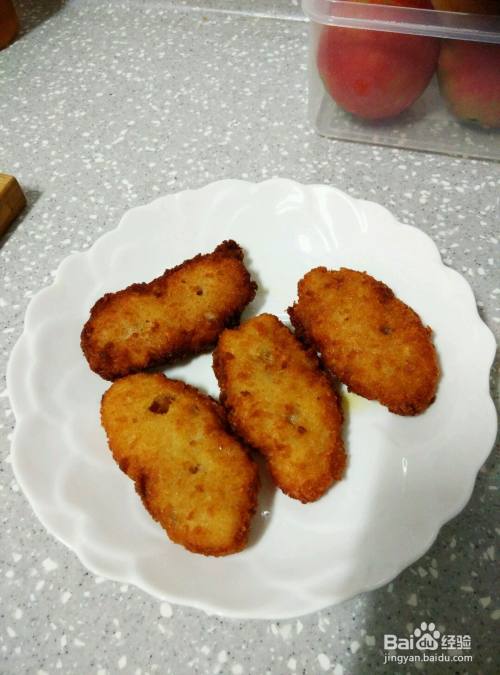 炸好的鳕鱼块放到盘子里面,鳕鱼我买的是现成的进口鳕鱼,宝贝儿子更加喜欢。