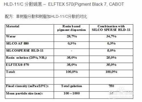 配方: 单树脂分散和树脂加HLD-11/C分散的对比