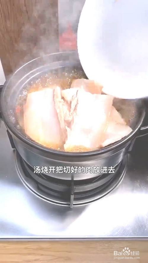 汤烧开后把切好的肉放进去。盖上盖子,小火炖50分钟。装盘撒上葱花即可