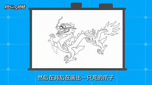 4再在龙的身体前面画出龙的两只爪子轮廓,再在头部下面画出一只爪子,然后在背后在画出一只龙的爪子。