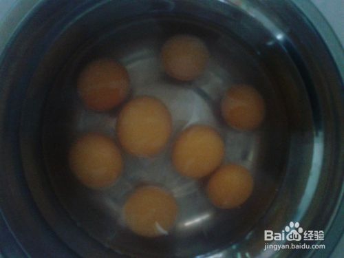 (由于鸭蛋的蛋清,在打开的时候会有一条长长的丝样粘在蛋壳上,我们可以先用温水把蛋泡上5到8分钟再打开鸭蛋就不会粘壳了)把8个鸭蛋打开,放入一个碗里装好。然后,用筷子把鸭蛋打散打均匀,一直打到鸭蛋上面起满小泡泡为止,在这过程不要放盐。
