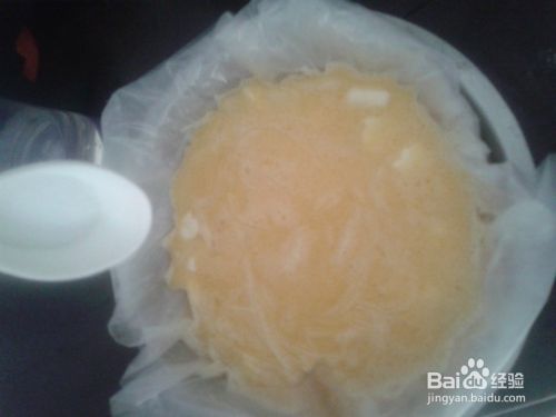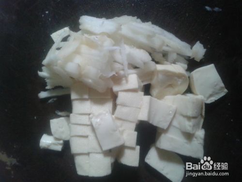 放入点油和盐,把切好的马蹄和水豆腐放锅里面炒一下添起,凉着备用。接着找来一个干净没用过的保鲜袋,摊开放入一个空碗里,要把碗内全部摊有保鲜袋,不然会漏出,备用。