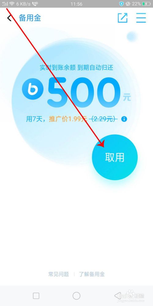 点击【500元备用金】,每个人的信用不同备用金也不同。如下图所示。
