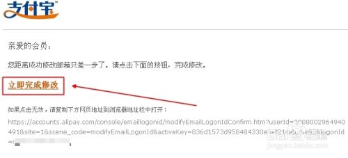 打开支付宝发来的由件后点击 《立即完成修改》即可。