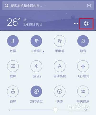 第一步:用食指从手机屏幕顶部往下滑,点击右上角的设置按钮。