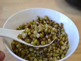 捞出绿豆,加入白糖,搅拌均匀。