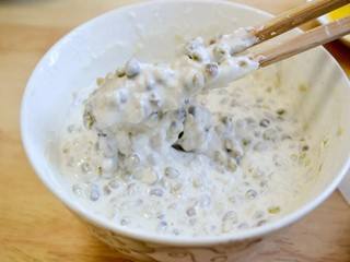 倒入糯米,搅拌均匀。