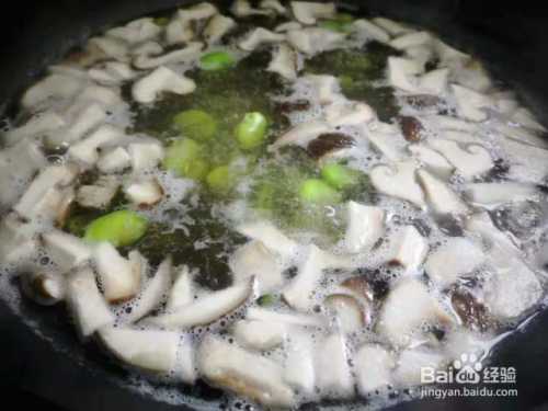 烧半锅水, 放入香菇块和蚕豆米一起焯煮2分钟捞出。