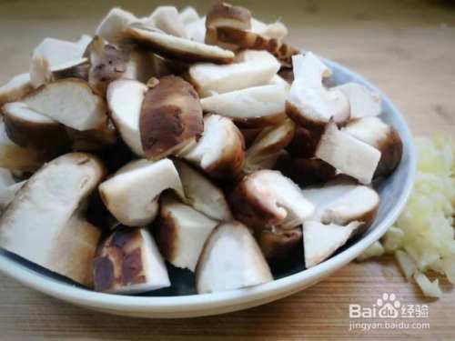 香菇冲洗干净,切成小块,姜蒜切成细末。