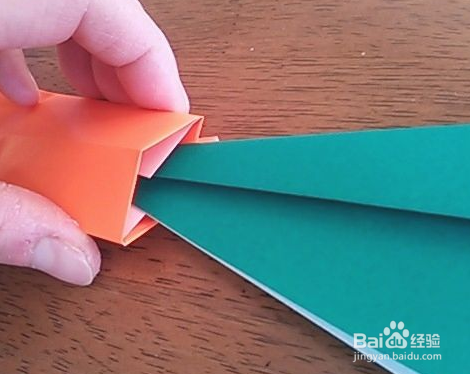 将折叠好的叶子插入胡萝卜的缝隙里,连接两者。