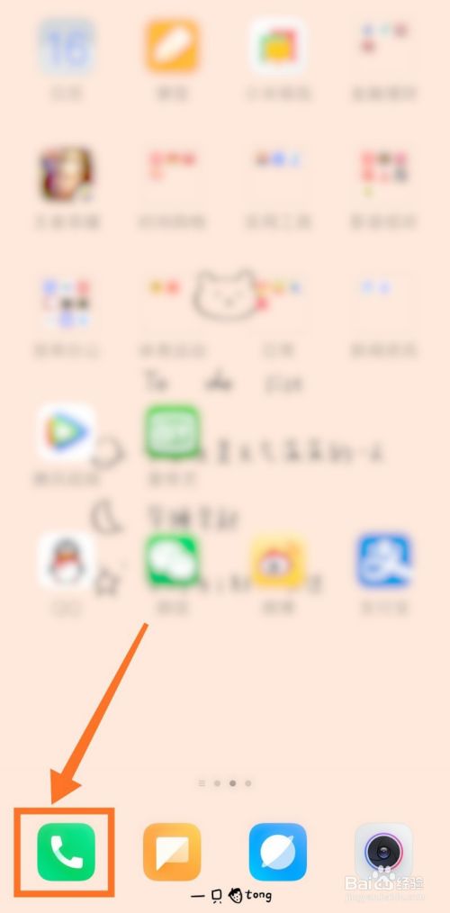 打开手机,界面如下图所示,点击箭头处的“电话”图标。