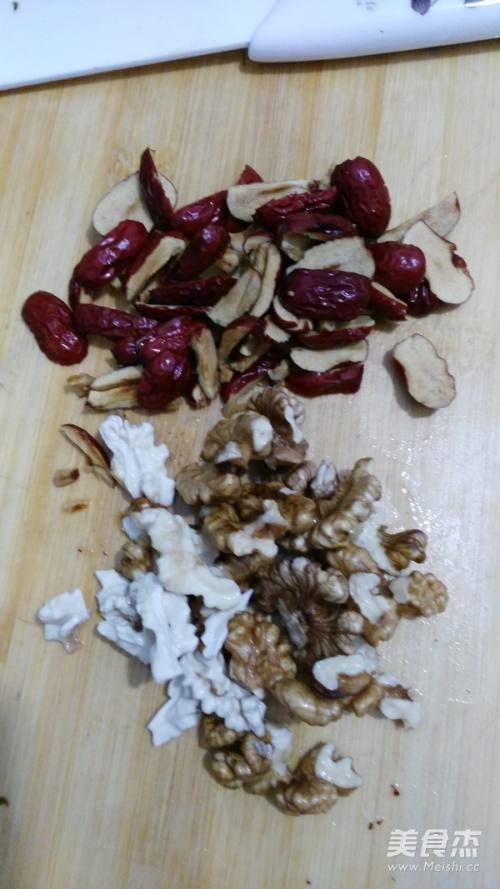 2红枣洗净剔除出枣核,核桃剥出核桃仁洗净备用。