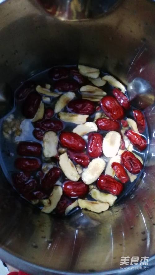 3大米淘净后倒入豆浆机桶,加入1200L水,倒入备好的红枣核桃。