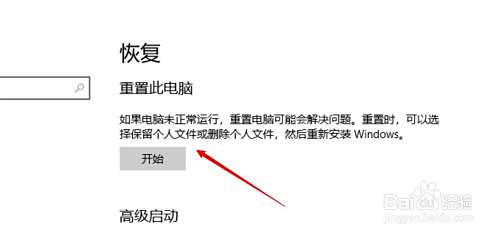 点击重置此电脑下的开始按钮即可。