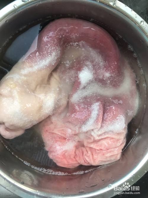 猪肚清洗重要,先里外冲洗干净,放盐,里外揉搓,直到洗净