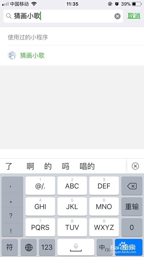 搜索“猜画小歌”,并找到相应小程序。