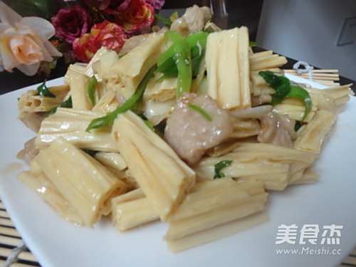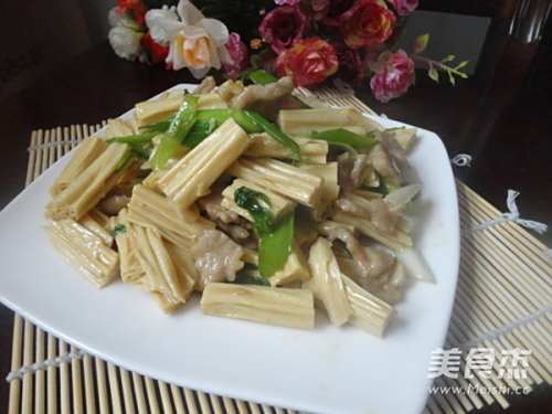 蒜庙和腐竹搭配味道如何,试一试就知道了,用这两种食材炒肉,绝对是下饭的家常菜。
