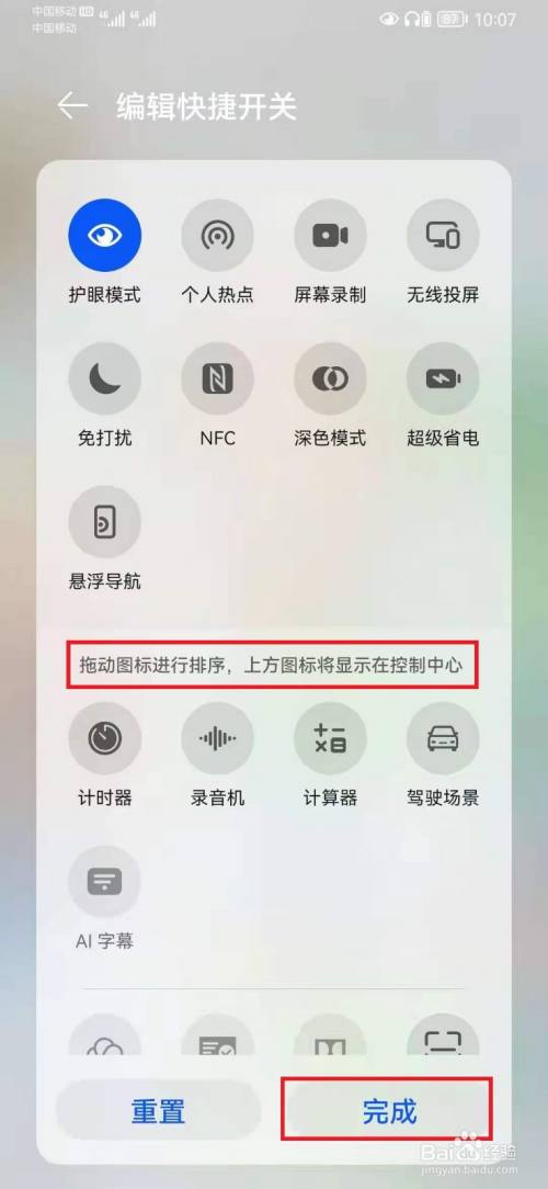 进入编辑快捷开关操作页面,通过拖动图标完成快捷开关的调整,点击【完成】即可。