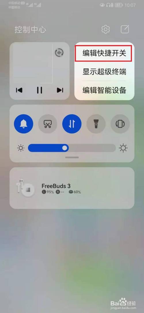 在华为手机上,在控制中心中进行设置的操作方法。下面以在控制中心设置编辑快捷开关为例。