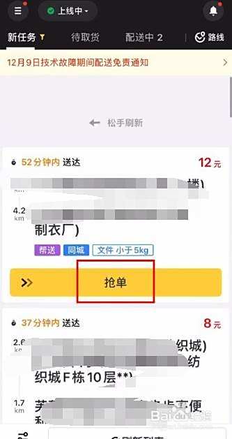 及时刷新订单信息,看到顺路的订单后点击【抢单】即可。