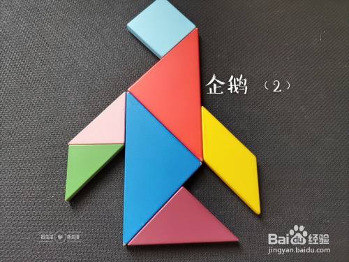 最后我们把黄色平行四边形摆好,一只企鹅就拼好了。