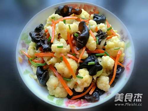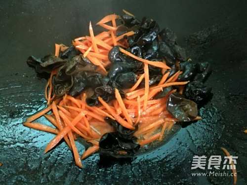 5锅里放油烧热,放入胡萝卜,木耳翻炒一下!
