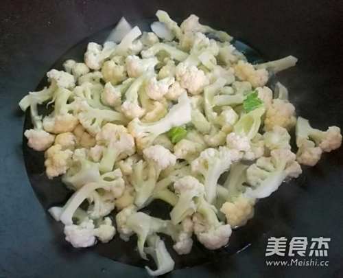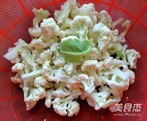 4锅里放水,烧开,放入花菜焯一下水,再用冷水冲凉,沥干水!