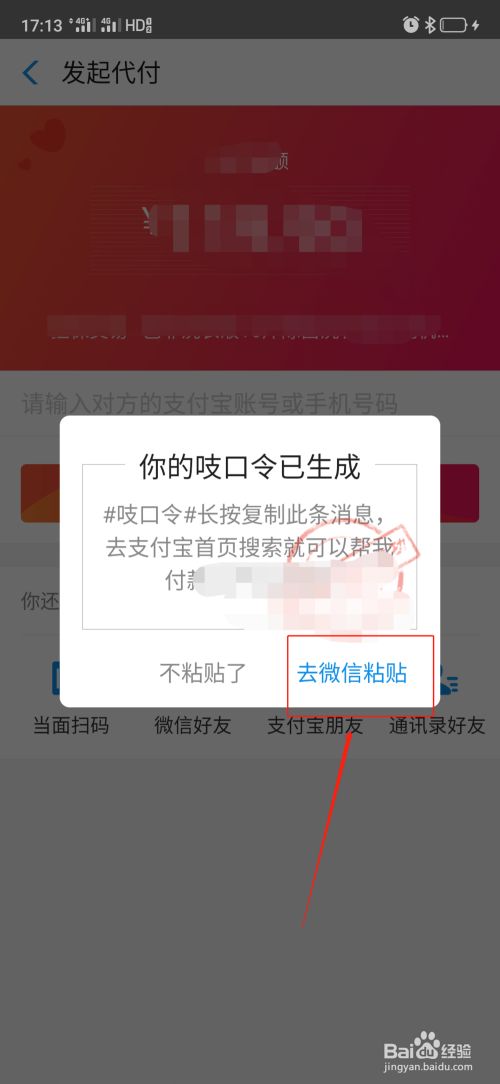 点击“微信粘贴”,粘贴给有微信好友帮忙付款即可。