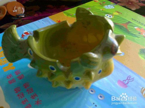 6--通过用丝绸布对彩陶的里和底及周边的反复的擦拭,小小的彩陶鱼缸就像新的一样。